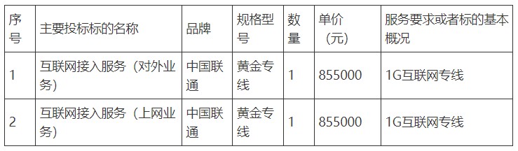 1、中国联合网络通信有限公司主要投标标的情况表