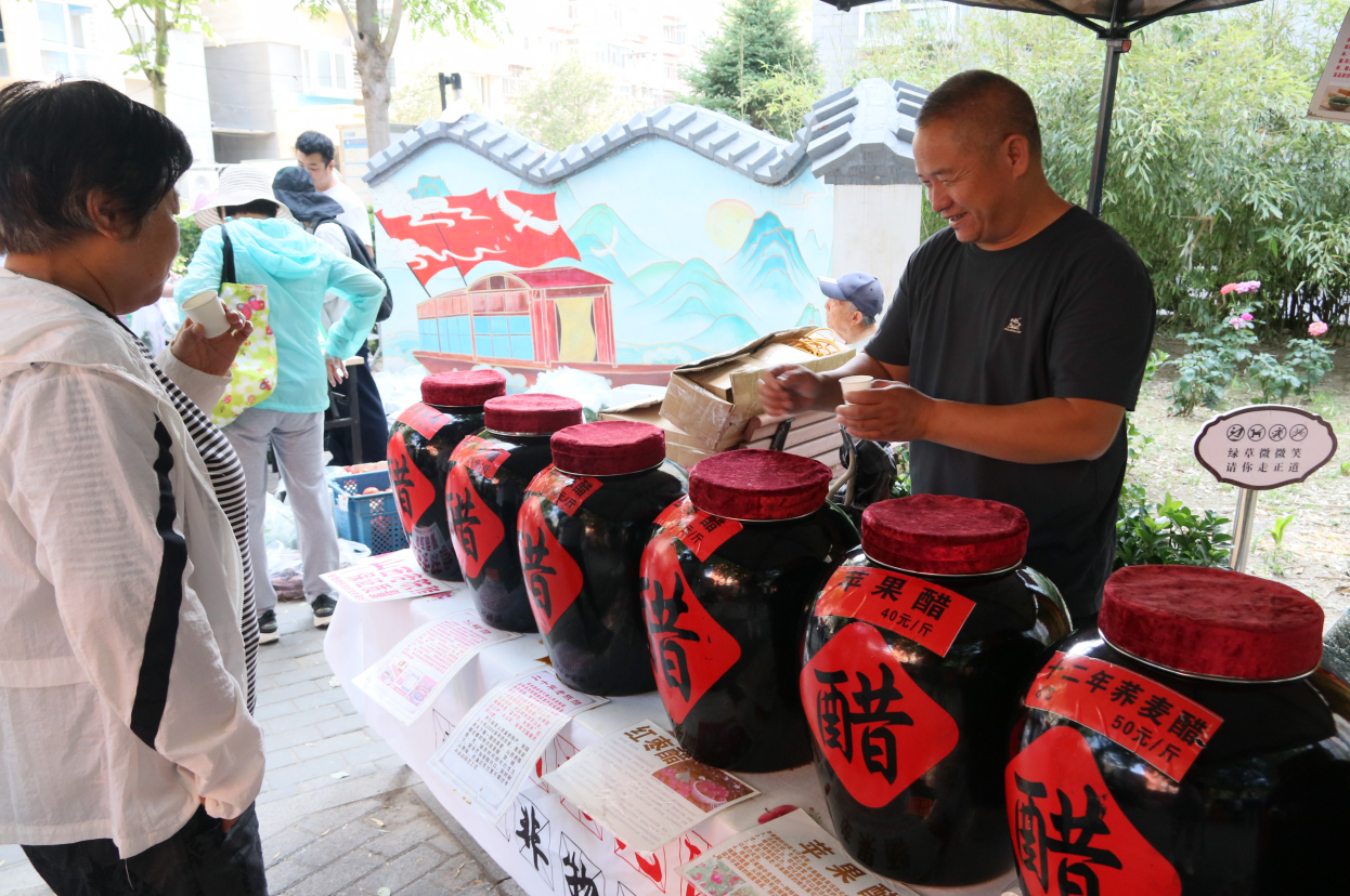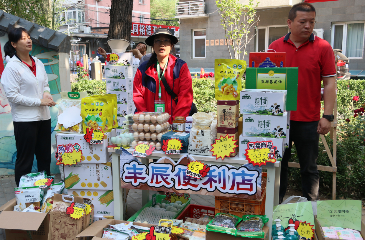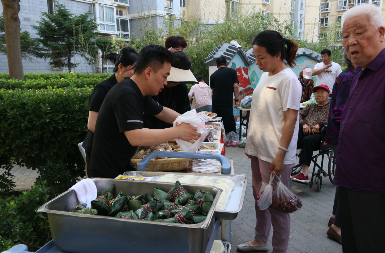 北京市海淀区甘家口街道“两新”组织党建联盟主席单位万守刚书记、先锋寰宇党支部书记孟岩早早抵达现场,指挥受邀厂家和服务团队精心布置摊位并开展安全检查。海淀社区商业服务协会党支部书记周平也亲临活动现场视察指导。经过排兵布阵,精心装扮的白中社区小花园呈现出一场盛大的社交聚会,充满了人与商品的交流与互动。各摊位上的货品丰富多样,带着余温的粽子散发着诱人清香,应季的新鲜蔬果、肉类熟食、山西老陈醋、各类炊具、休闲运动服装等亲民价的产品很受居民们喜爱。