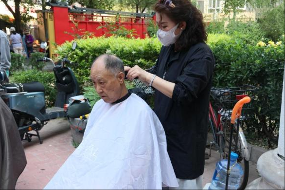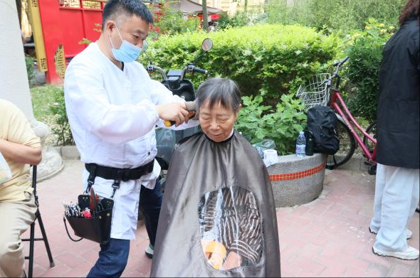 理发区前,排队的老人络绎不绝,争先恐后。两位手艺精湛的理发师手持银剪上下飞舞,十分钟就能让银发老人显现精神模样。张大爷从椅子上站起身,摸着新发型直夸:“比理发店剪得还称心!这队伍排得值!”这话一出,惹得排队的老人们纷纷笑出声,现场活泼热闹。理发后的老人各个神采飞扬,理发师忙到直不起身,但仍认真对待每位老人。