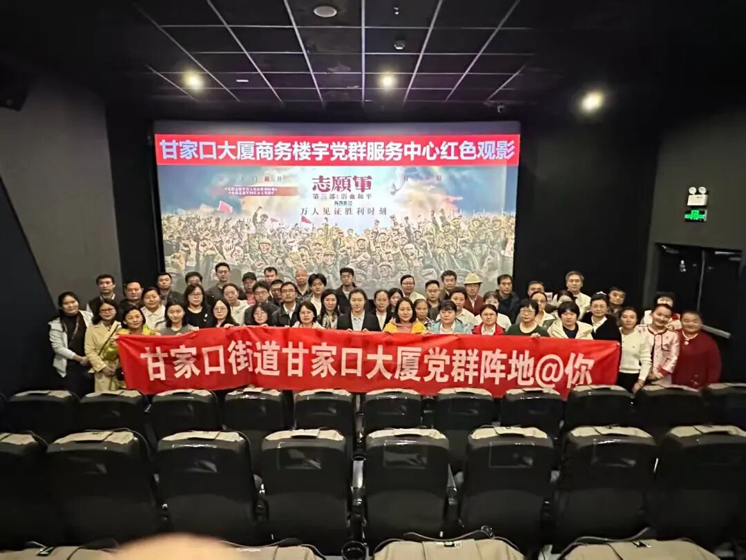 为纪念和弘扬抗美援朝精神,缅怀革命先烈、铭记英雄事迹,10月17日,甘家口街道世纪经贸大厦、华通大厦、甘家口大厦商务楼宇党群服务中心,共同组织辖区内党员、入党积极分子和楼宇职工观看《志愿军》系列影片,百余人同场不同厅,共忆峥嵘岁月,感受家国情怀。
