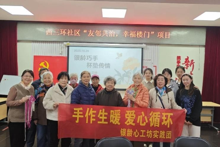 10月29日,西三环社区联合首都师范大学银龄心手工坊实践团,以“校地协同”为抓手,深化“银龄陪伴助老服务”,为45号院老龄居民开展手工杯垫编织活动。高校志愿者与老人互动协作,在轻松的创作氛围中传递陪伴感,既让老人体验手工乐趣,也让高校志愿服务资源真正融入社区养老服务,让老年居民感受到跨代际的温暖关怀。“和青年志愿者一起参与活动,不仅收获了快乐,更感受到社区对我们的用心陪伴。”参与老人说道。