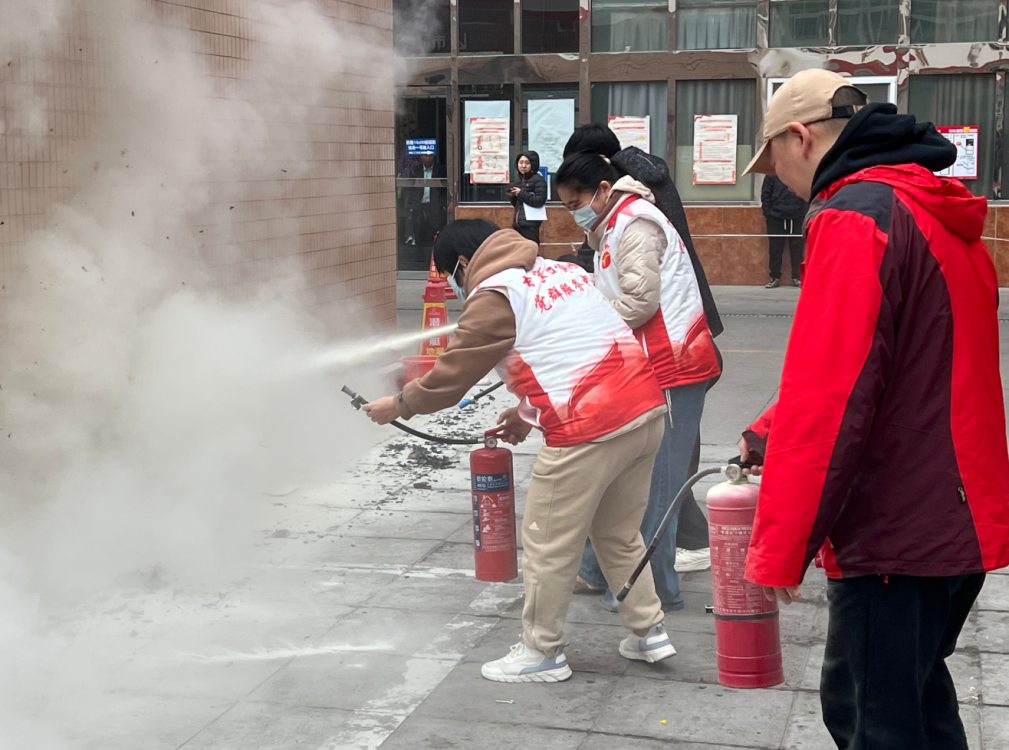 本次演练活动从楼宇内起火初期疏散人员开始,模拟了火灾发生时楼宇内人员的紧急撤离过程。接着进入灭火实操环节,参与者按照“提、拔、握、压”的正确操作步骤,轮流使用灭火器扑灭模拟火源,亲身体验应对火灾初期的实际操作。