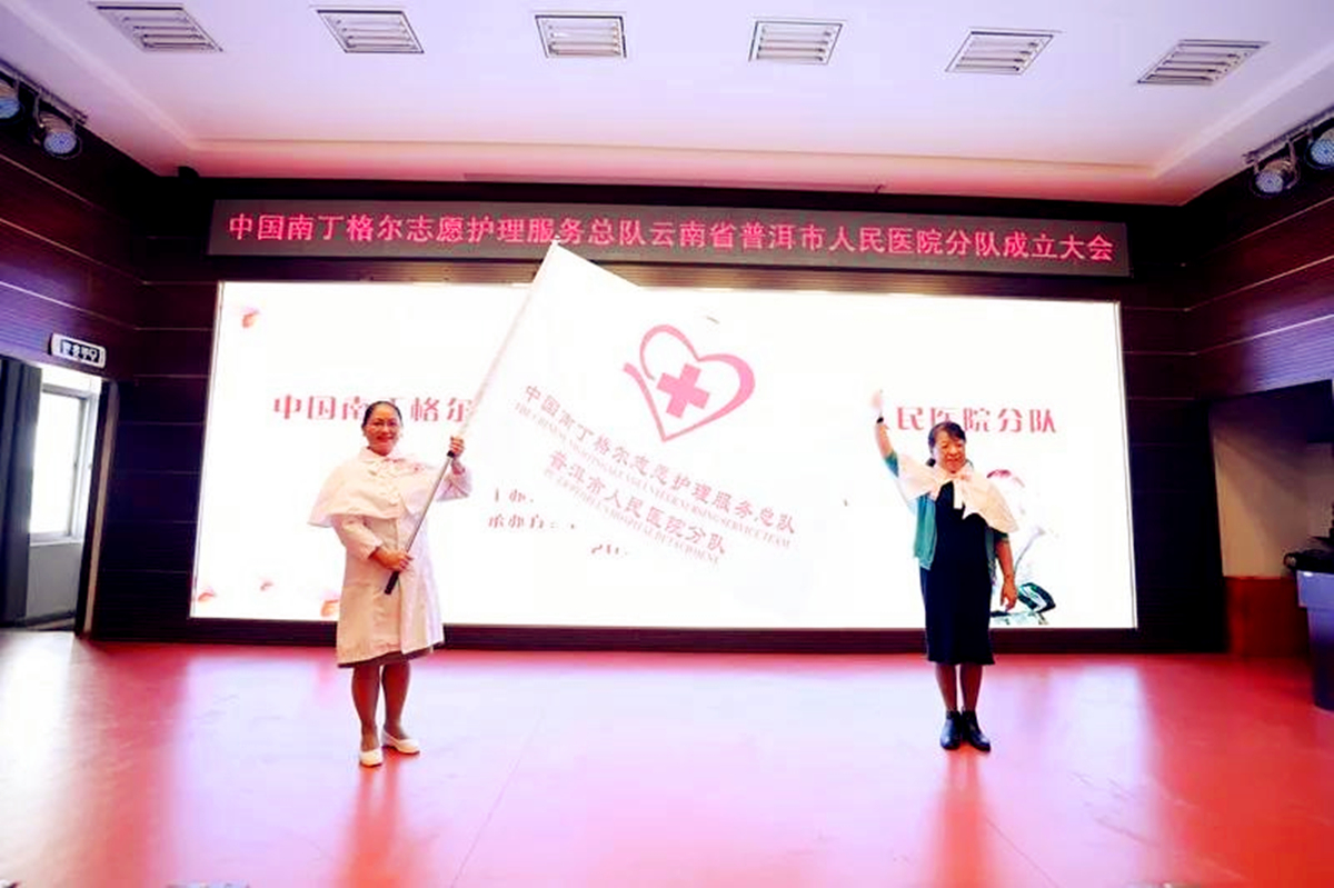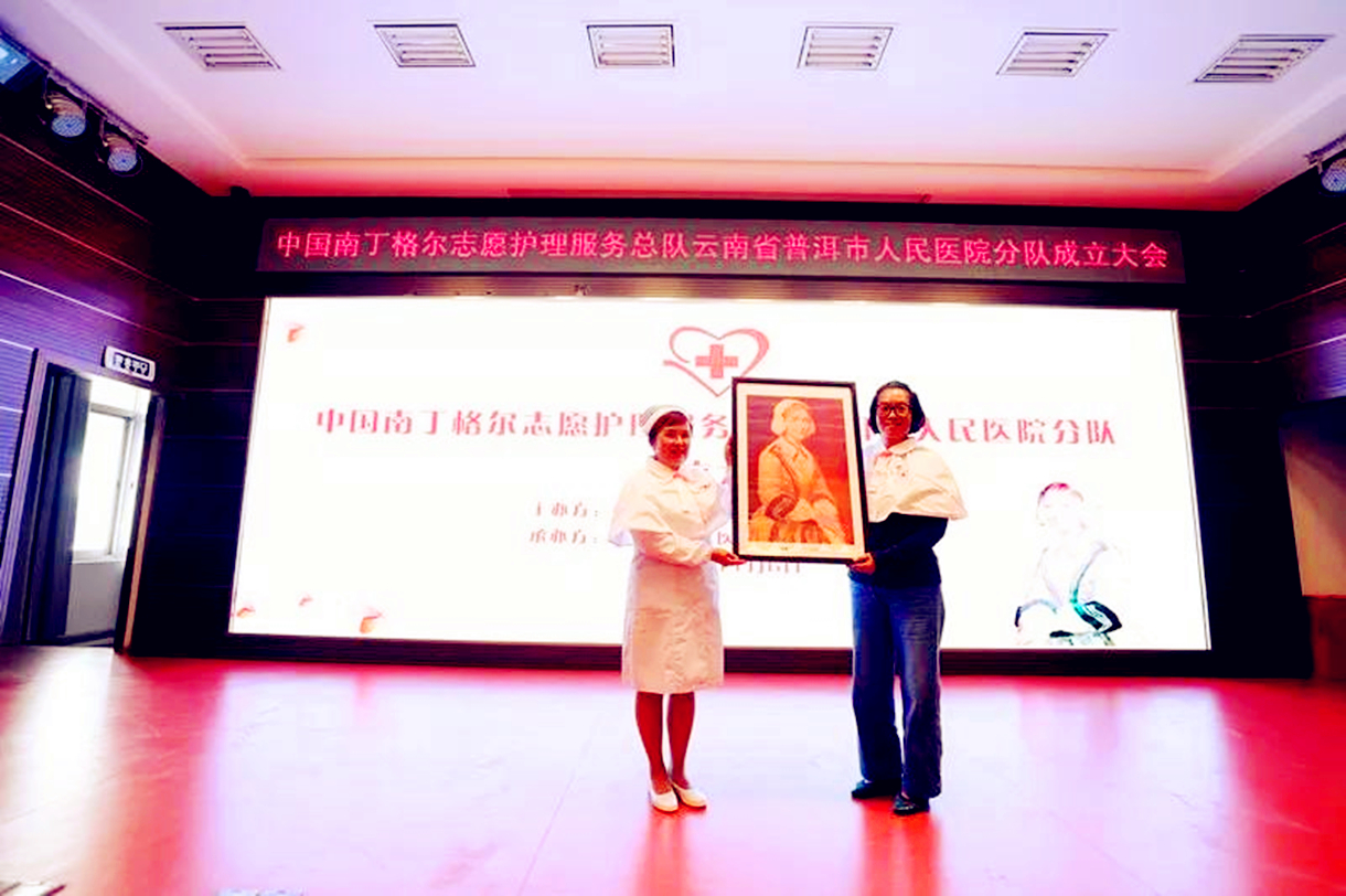 在中国南丁格尔志愿护理服务总队及普洱市红十字会的指导和帮助下,中国南丁格尔志愿护理服务总队普洱市人民医院分队,近日,正式成立,成为总队的第 466 支分队(云南省第四支分队)。中国南丁格尔志愿护理服务总队副理事长、第44届南丁格尔奖章获得者、四川大学华西医院原护理部主任、华西护理学院院长成翼娟教授,中国南丁格尔志愿护理服务总队副理事长、上海市第五人民医院原副院长、护理部主任杨青敏教授,中国南丁格尔志愿护理服务总队副理事长、北京安仁公益基金会姜景惠理事长三位领导亲临普洱,指导帮助普洱市人民医院成立中国南丁格尔志愿护理服务总队普洱市人民医院分队。普洱市第二人民医院,普洱市中医医院,思茅区人民医院的护理代表及普洱市人民医院南丁格尔志愿护理服务志愿者代表共260余人参加成立仪式。