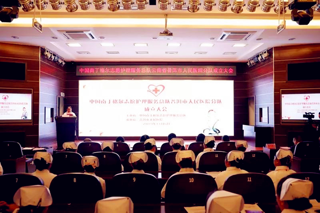 中国南丁格尔志愿护理服务总队副理事长姜景惠女士宣读《关于“申请成立中国南丁格尔志愿护理服务总队普洱市人民医院分队”的批复》;中国南丁格尔志愿护理服务总队副理事长、第44届南丁格尔奖章获得者成翼娟教授对普洱市人民医院加入中国南丁格尔志愿护理服务队伍表示欢迎与祝贺,希望普洱分队能成为总队***活跃的那一支分队。
