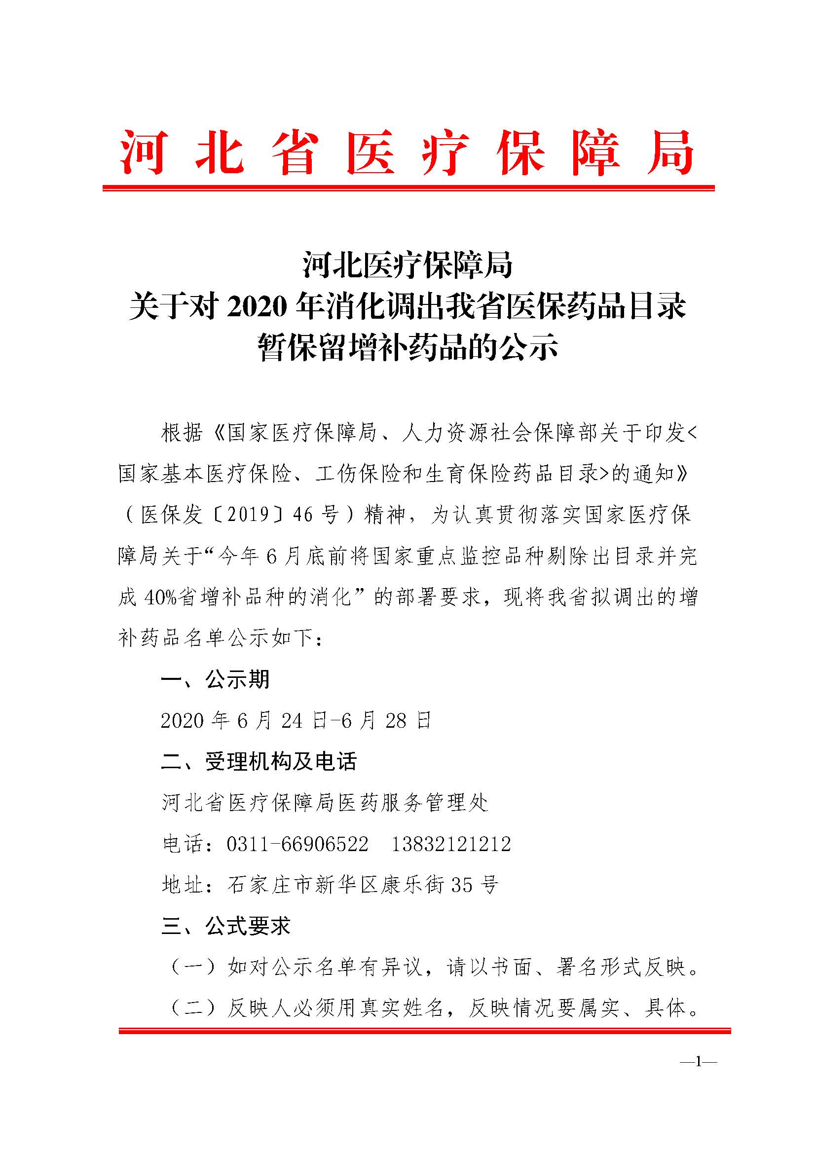 河北医疗保障局关于对2020年消化调出我省医保药品目录暂保留增补药品的公示