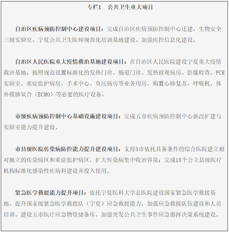 统筹区内外优质资源,提升建设速度,加快推进综合类国家区域医疗中心、自治区级医疗中心和癌症、心血管、儿科、妇产、呼吸和创伤等专科类国家区域医疗中心建设。到2025年,争取创建1个综合类别国家区域医疗中心,6-8个专科类别的国家区域医疗中心和1个“互联网+医疗健康”国家区域中心;建设5个综合类自治区级区域医疗中心和20个专科类自治区级区域医疗中心;宁夏医科大学总医院进入全国百强医院、自治区人民医院进入西部20强医院;区内向区外转诊人数每年下降5%以上;以市为单位,推进胸痛、卒中、创伤、危重孕产妇和危重新生儿救治中心、肿瘤和慢病中心建设,实现“七大中心”全区覆盖,慢病和心脑血管疾病筛查全面开展,全区急危重症救治能力进一步提升。