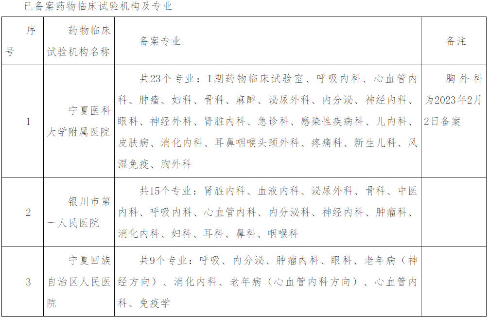 附件:已备案药物临床试验机构及专业