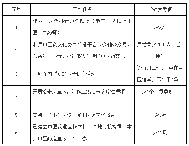 县级以上中医医疗机构每年工作任务指标参考表