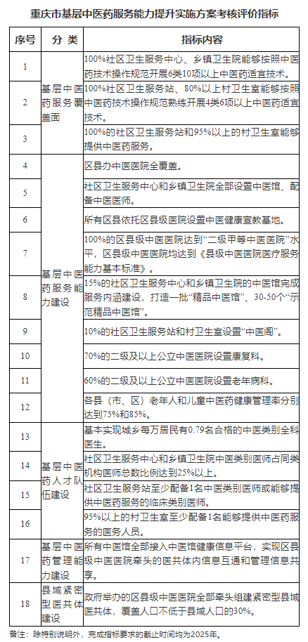 重庆市基层中医药服务能力提升实施方案(2023—2025年)