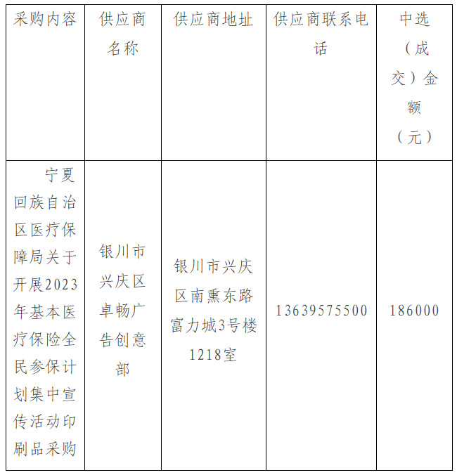 宁夏回族自治区医疗保障局2023年基本医疗保险全民参保计划集中宣传活动印刷品采购项目