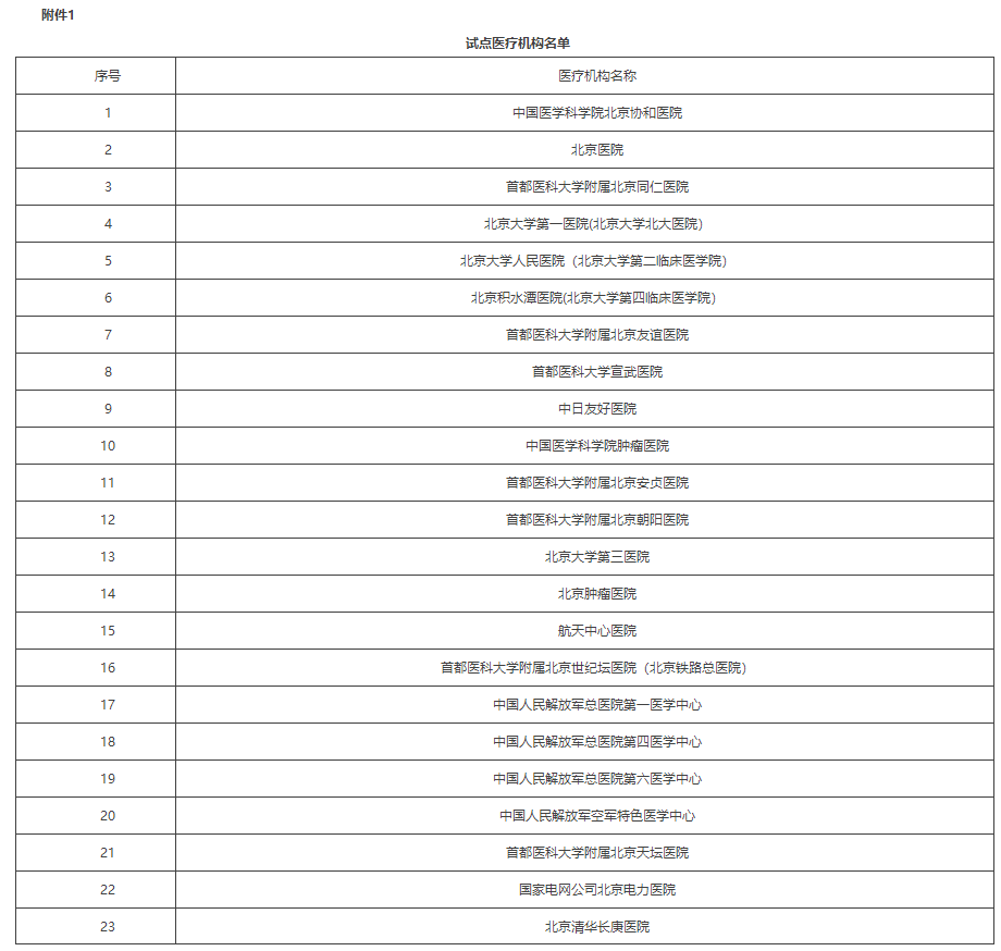 附件:1.试点医疗机构名单