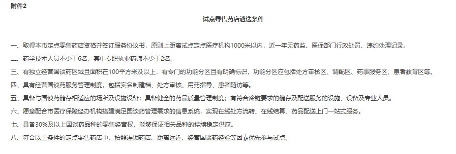 2.试点零售药店遴选条件