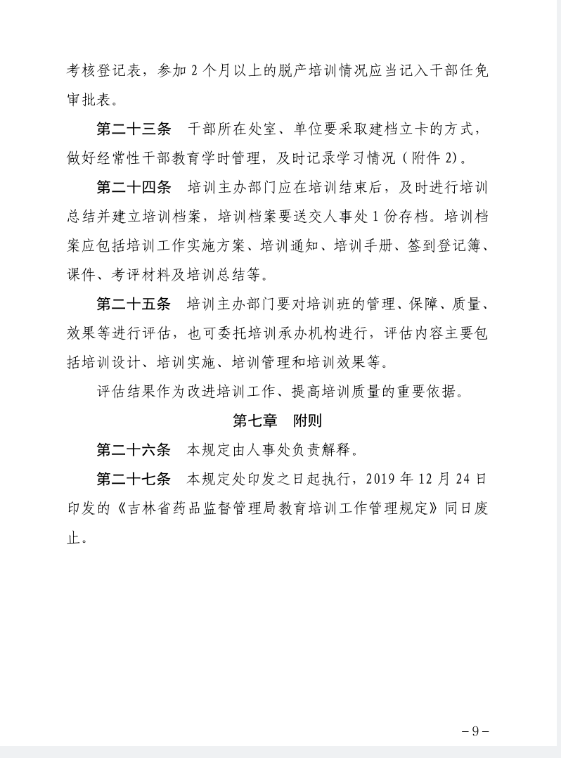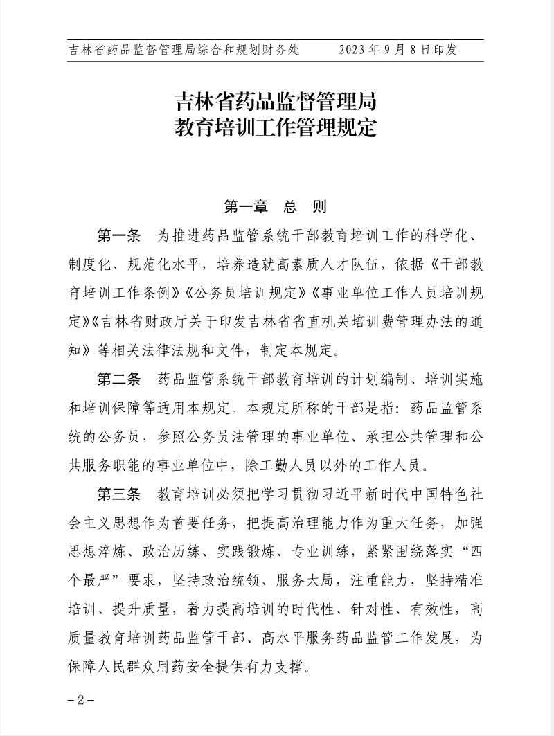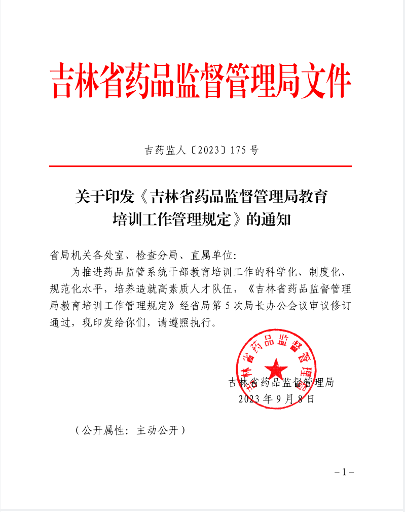 关于印发《吉林省药品监督管理局教育培训工作管理规定》的通知