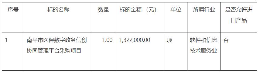 项目名称:南平市医保数字政务信创协同管理平台采购项目