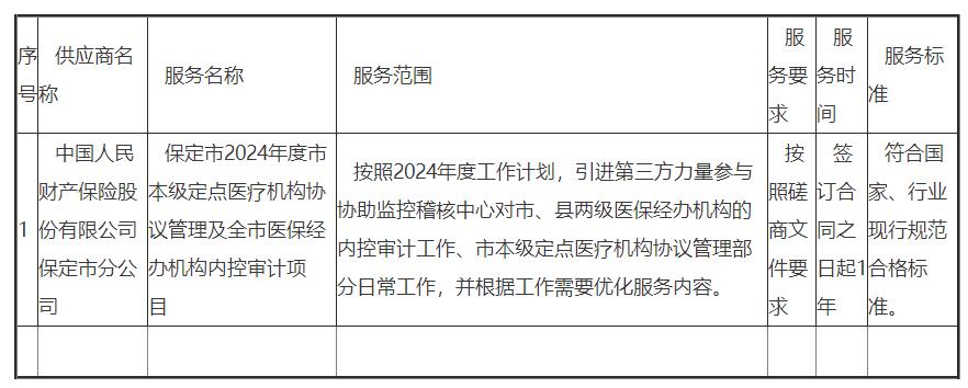 供应商名称:中国人民财产保险股份有限公司保定市分公司