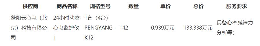 中标成交供应商名称:蓬阳云心电(北京)科技有限公司