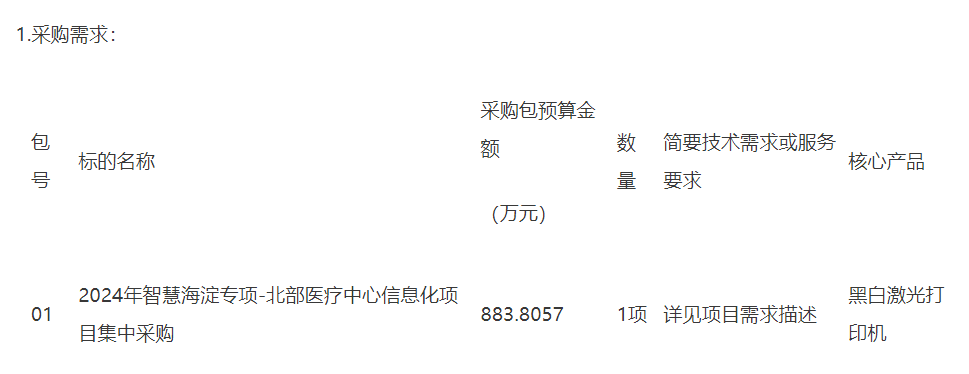 二、项目名称:2024年智慧海淀专项-北部医疗中心信息化项目集中采购