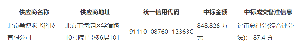 中标成交供应商名称:北京鑫博腾飞科技有限公司