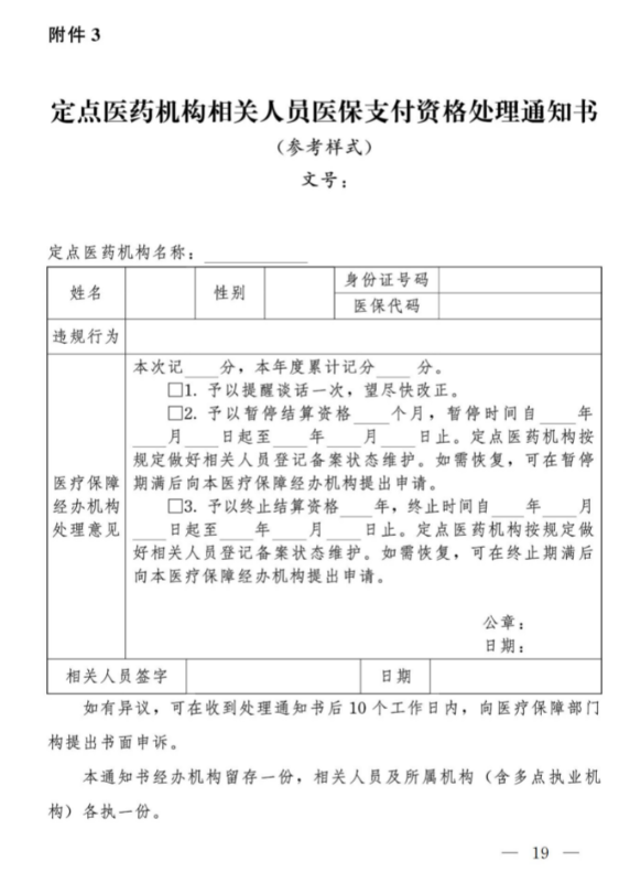3.定点医药机构相关人员记分处理通知书