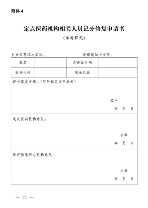 4.定点医药机构相关人员记分修复申请书