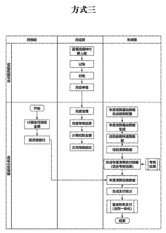 依据当年基金预算、往年月基金支出规模,按月提前拨付医保基金给定点医药机构。逐笔按病种付费入组、记账,同步审核、扣款,绩效考核与年度清算挂钩。