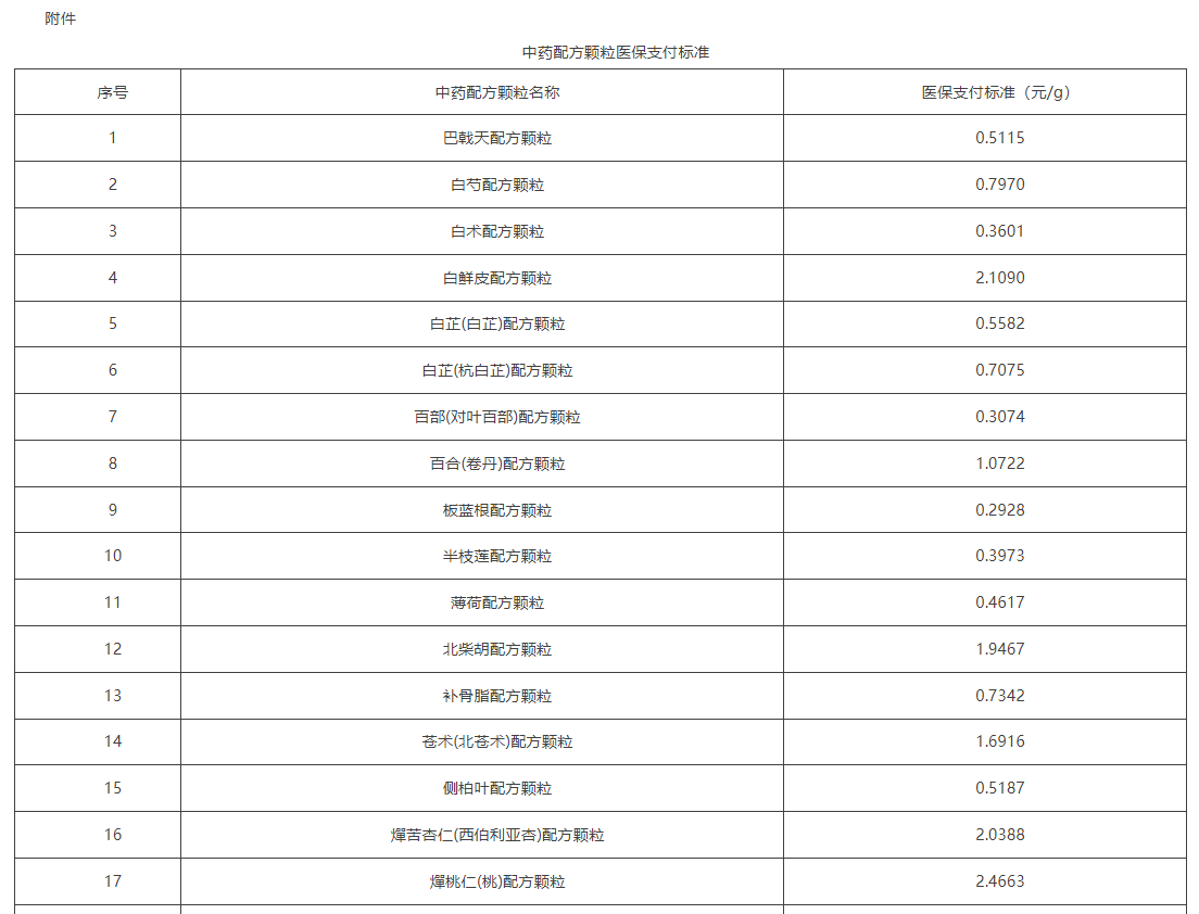 附件:中药配方颗粒医保支付标准