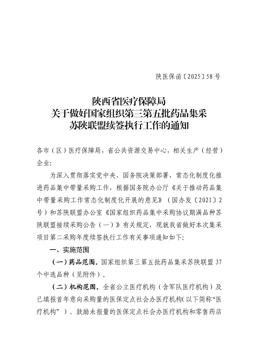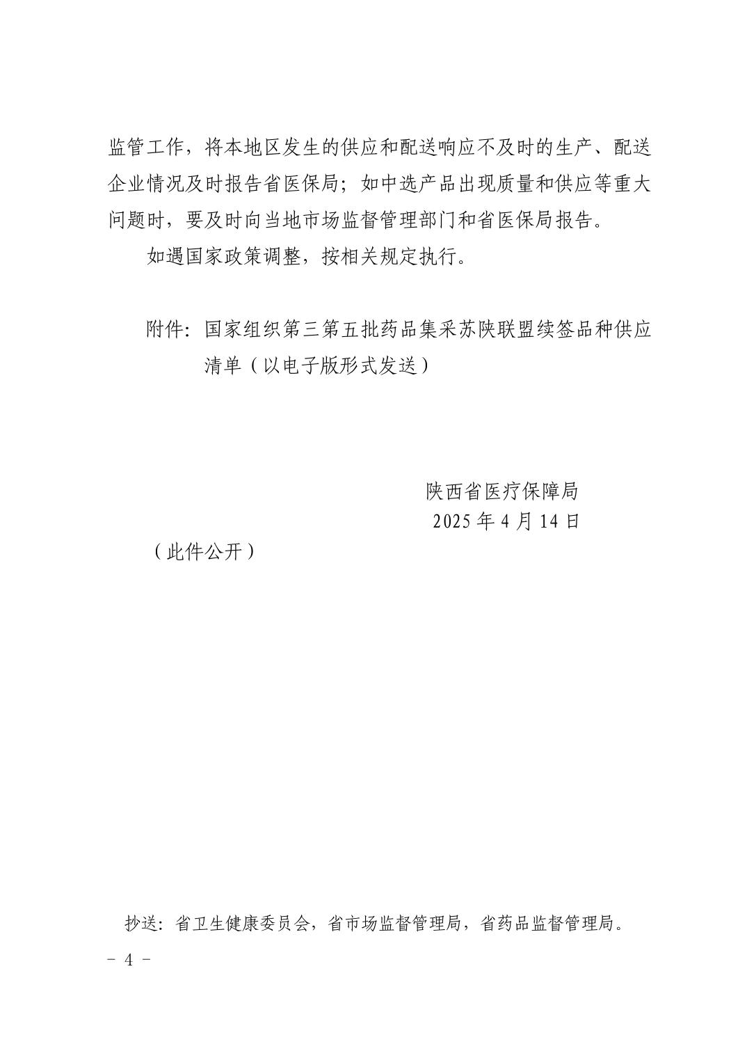 陕西省医疗保障局关于做好国家组织第三第五批药品集采苏陕联盟续签执行工作的通知
