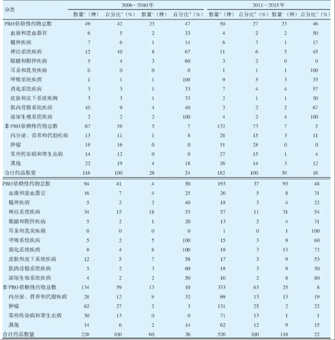 国际上,基于PRO证据支持卫生技术上市审批从20世纪初就已兴起。表1通过分析相关学者的研究数据,将FDA从2006—2020年不同阶段审批通过的药品对PRO的使用情况进行了整理。