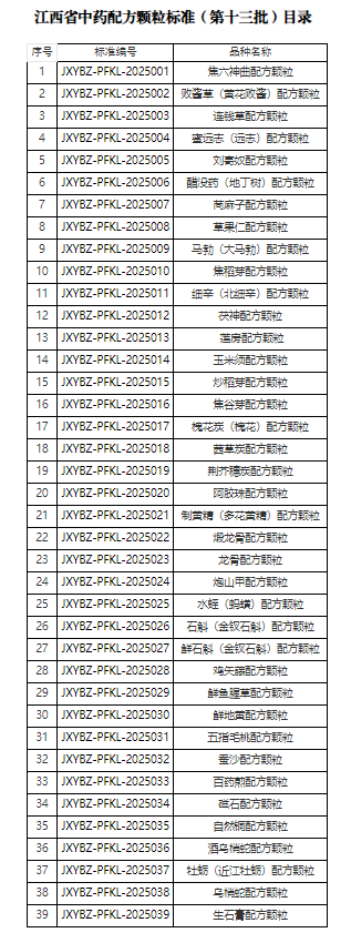 附件:江西省中药配方颗粒标准(第十三批)