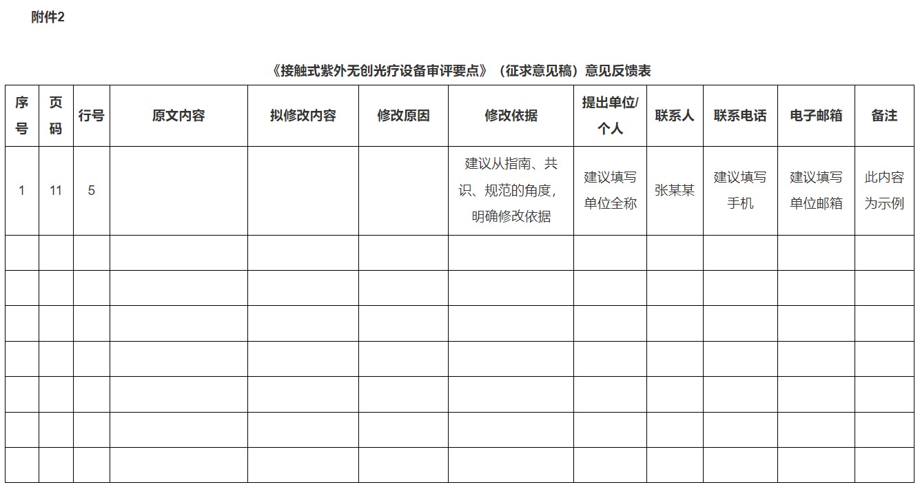 1.邮件发送至:414138662@qq.com,邮件主题请注明“接触式紫外无创光疗设备审评要点意见”字样。