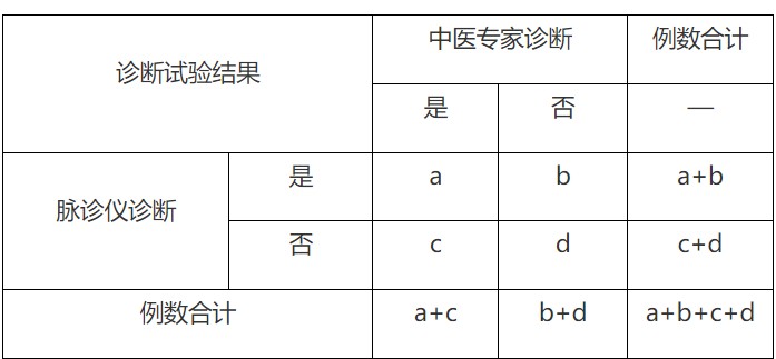 (一)在脉诊仪与中医专家脉象诊断结果的一致性试验中,对照中医专家脉象诊断的结果,脉诊仪脉象诊断结果的临床评价标准如下: