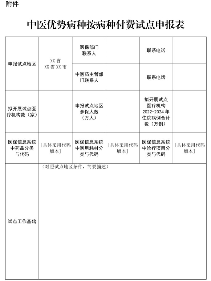 附件:中医优势病种按病种付费试点申报表