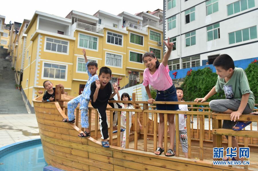 2019年8月22日,福建省福安市下岐村小朋友在下岐渔民广场前玩耍。新华社记者 林善传 摄