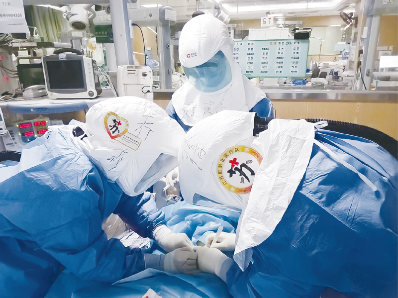 2月27日晚10时,一名70岁的患者呼吸急促、心率加快、意识不清……医务人员将其紧紧围住。一个个穿戴防护服的“大白”看似笨重,行动起来却矫捷而稳健,仅用5分钟,就完成了气管切开手术的关键流程。