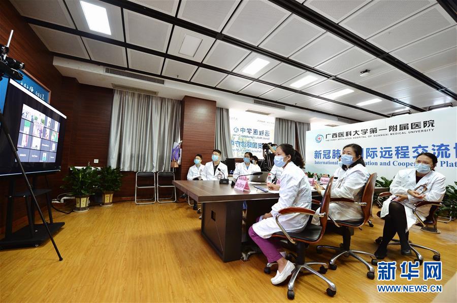 4月20日,广西医科大学第一附属医院专家与柬埔寨医务人员进行视频交流。 新华社记者 崔博文 摄