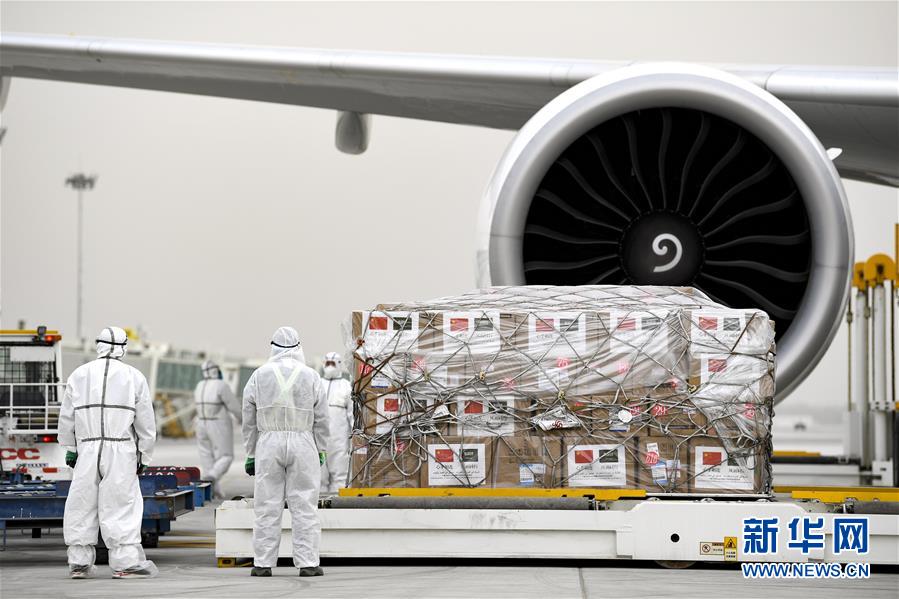 4月15日,中国赴沙特阿拉伯抗疫医疗专家组从宁夏银川启程,这是工作人员在装运援助沙特阿拉伯的医疗物资。 新华社记者 冯开华 摄